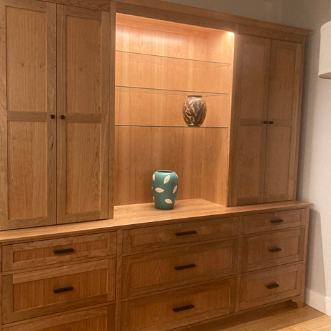 Examples of our custom furniture projects, including casework, bookcases, tables, chairs, benches, desks, dressers, beds, front doors, fireplace mantles, staircases and other projects for customers on Whidbey Island and in the Seattle area.
